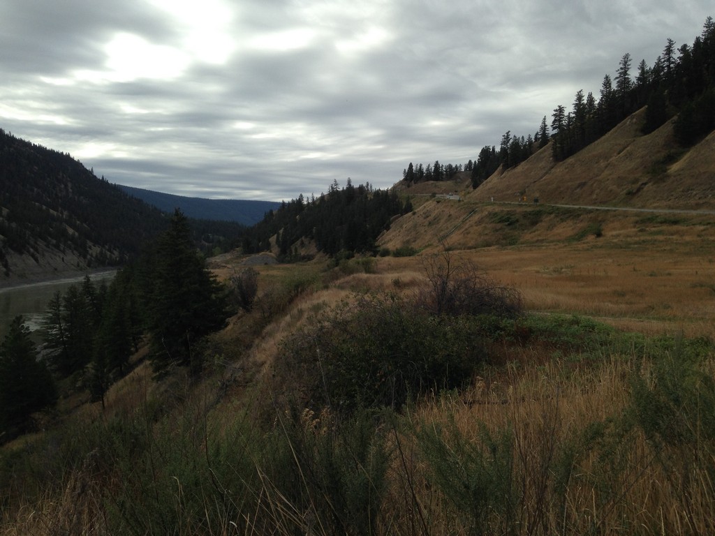 Hwy 20, just outside of the town of Williams Lake. The road climbs up and out of the river valley.