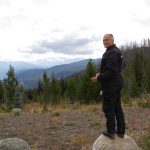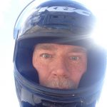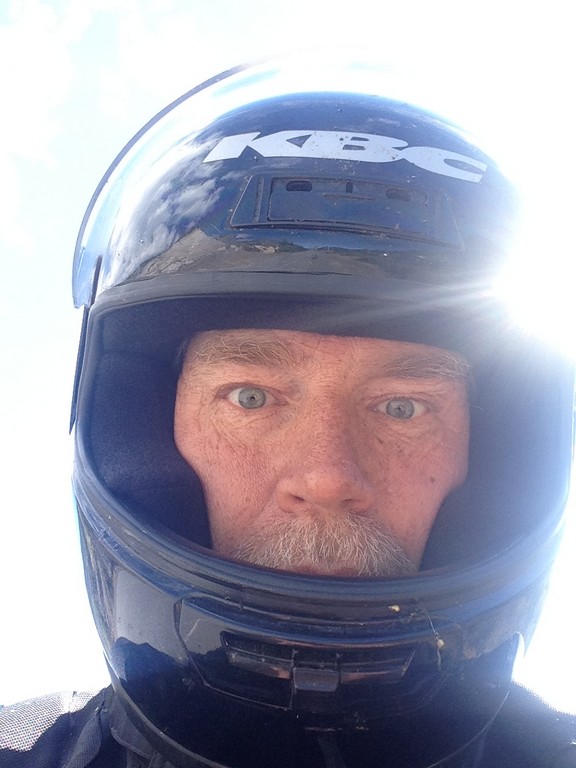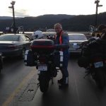 Ken parking his bike because we have no place to go! Hwy 20 ends.