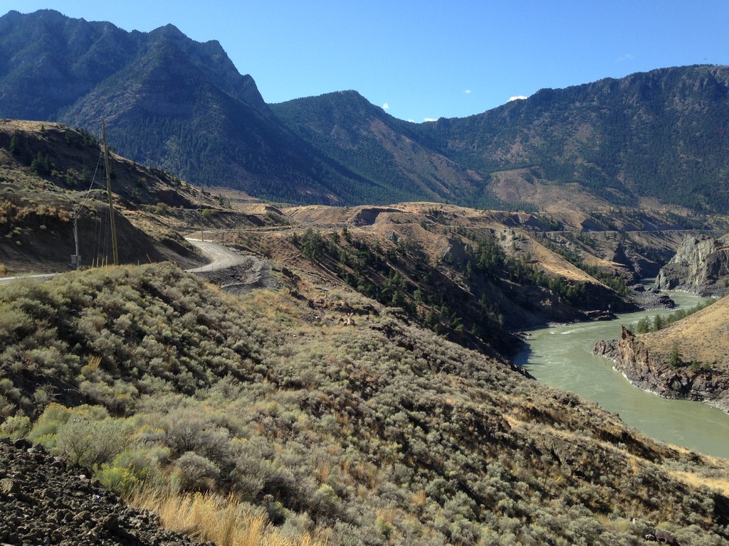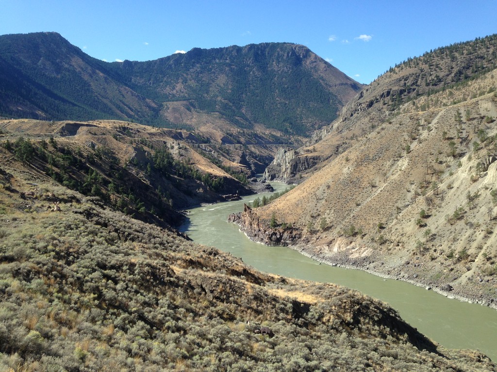 The second of three separate crossings of the Fraser river. Note the different environment from the previous crossing at Williams Lake.