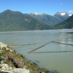 A log-boom keeping a few logs from being in the way of water traffic. Also it is the seaside view from the end of Hwy 20.
