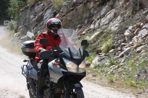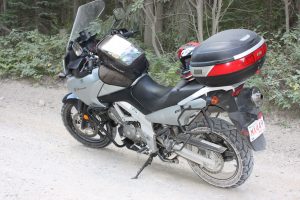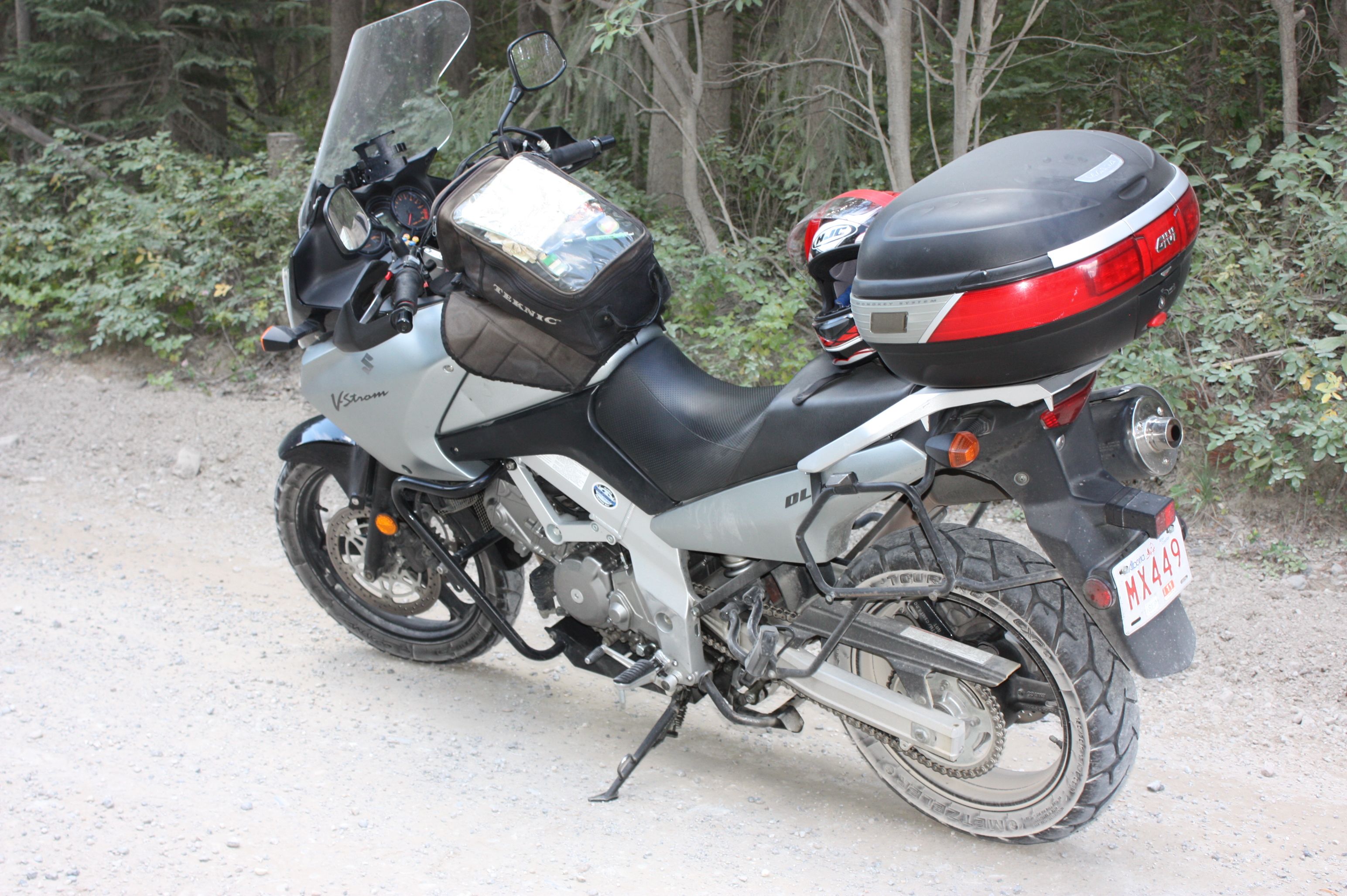 DL-650 lightly loaded. Note the tires, this is a rider and bike that likes the off-road portion of our trips!