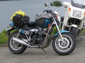 The first bike that Clint rode on our trips. A small gas tank made for short trips between gas stations. I remember a couple of occasions Clint had to take 2 liter pop bottles full of gas and running out of gas when he didn’t!
