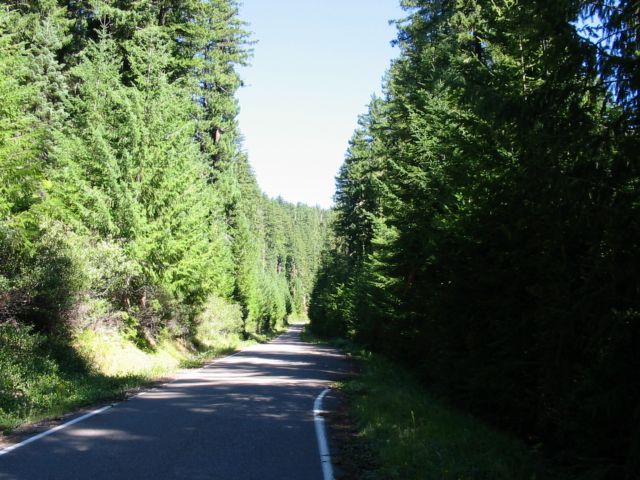 typical single lane road thru parks and forest reserves in Oregon, pull out bulges every 100 yards or so. Fun :)